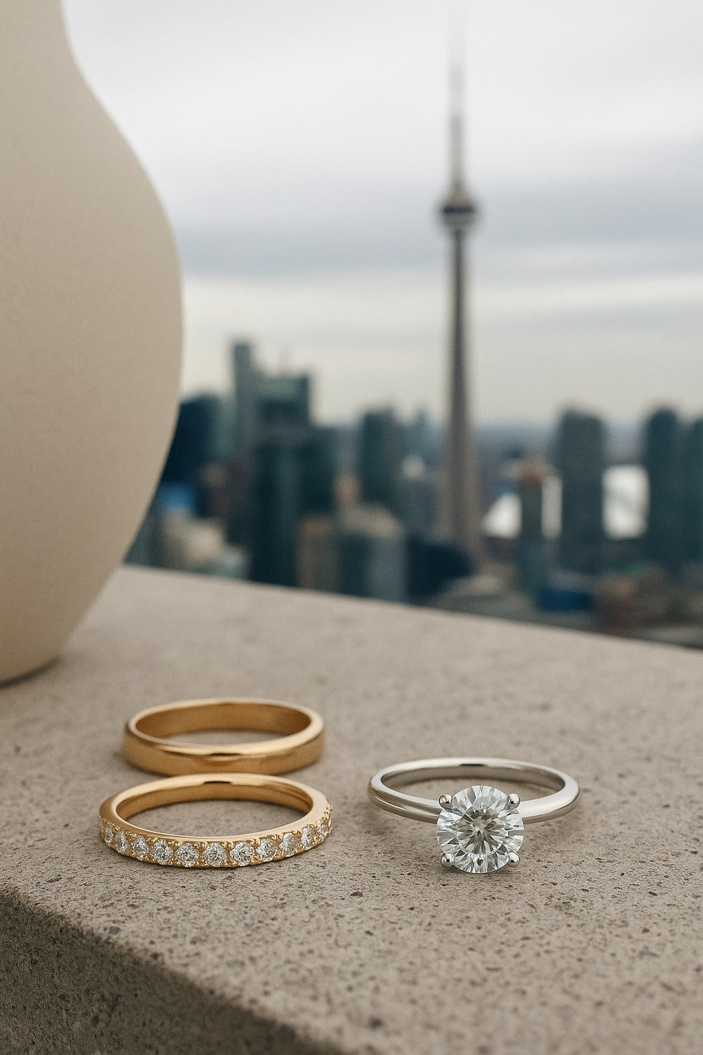 We also have an in-person studio where customers can visit us see jewelry live in person to truly grasp the quality of our workmanship. Our Studio is located in Vaughan, ON by Highway 7 & Weston Road. While we don’t keep all our rings in stock, our team can guide you through our custom order process and spend time with you to show you our quality workmanship.